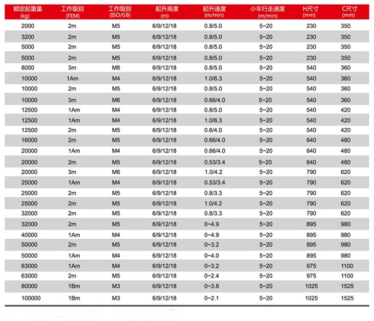 高品质的起升驱动确保运行的安全平稳和高效,紧凑的结构设计确保吊钩的偏移尺寸最小,起升提供双速(变频可选)、小车均为变频的标准配置,确保客户各项工作如期执行。
