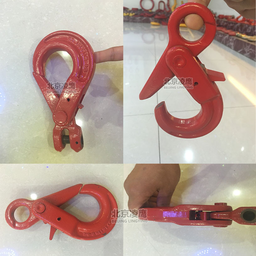 美式羊角安全钩是一种高强度足料吊钩,采用高级合金材料,使承受以外超负荷工作时不发生断裂,只是逐渐变形,安全系数更高;钩头处全新设计,使货物不会脱钩。吊钩常借助于滑轮组等部件悬挂在起升机构的钢丝绳上。